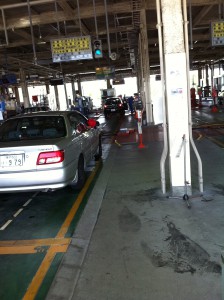 ハンマ-を持ったお兄ちゃんに、ライトや指示器、ワイパーなどのチェックを受けた後、